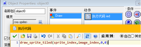 ②编辑object0这个物体,新建Draw事件,然后在里面写下如下代码: